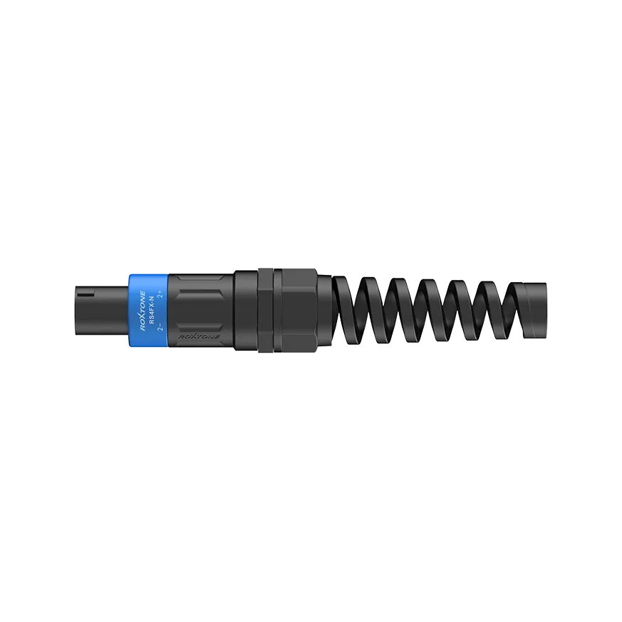 Разъем Roxtone RS4FX-N — это 4-контактный Speakon-разъем типа «мама». Легко собирается из трёх частей. Подходит для кабеля 8–12 мм.