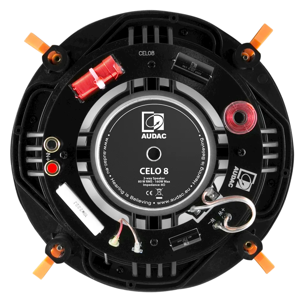 Встраиваемая акустика Audac CELO8 — это высококачественная модель серии CELO. Она имеет 8-дюймовый сабвуфер и 1-дюймовый твитер с алюминиевыми диффузорами. Мощность — 80 Вт RMS, максимальная — 160 Вт.