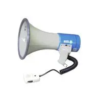 Ручной мегафон SHOW ER-66S с выносным микрофоном подходит для открытых и закрытых пространств, массовых мероприятий, строительства. Дальность действия — 800–2000 м. Есть функция сирены для оповещения об эвакуации. Работает от 8 батареек типа C, без них весит 1650 г. Есть «пистолетная» рукоятка, микрофон крепится на корпусе.