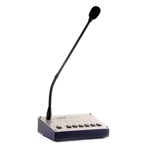 Микрофонная консоль Roxton SX-R31 работает совместно с комбинированной системой ROXTON SX-240 и ROXTON SX-480. Микрофонная консоль - это устройство, совмещающее в себе функции селектора зон, микшера и микрофона. Консоль ROXTON SX-R31 предназначена для выбора нужных зон (до 5 зон) и передачу в них речевого сообщения с микрофона или музыкального источника, подключенного к разъему на задней панели. Консоль осуществляет дистанционное управление комбинированной системой ROXTON SX-240/480, в заданном приоритете (1~4 приоритеты). Приоритеты означают, что консоль с высшим приоритетом, прерывает (блокирует) работу консоли с низшим (меньшим) приоритетом. Приоритет консоли соответствует ее адресу. Питание консоли осуществляется от комбинированной системы по информационному кабелю. Конструктивно блок выполнен в металлическом корпусе в настольном исполнении.Характеристики и возможности