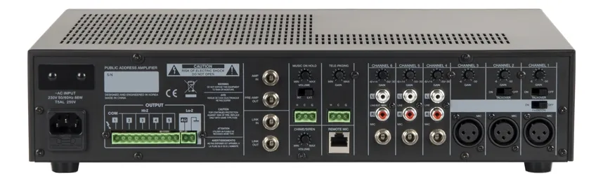 Зональный усилитель класса D ROXTON AX-360 мощностью 360 Вт позволяет строить распределённые системы речевого оповещения и музыкальной трансляции. В первую очередь он предназначен для озвучивания помещений. Пять линейных и семь микрофонных аудиовходов, с индивидуальными регуляторами громкости, фантомным питанием и тремя уровнями приоритетов, дают широкий выбор источников аудиосигнала, а дополнительный низкоомный аудиовыход позволяет подключать к усилителю акустические системы бытового и профессионального уровней.Встроенный селектор зон, коммутирующий высоковольтные выходы усилителя с пятью линиями громкоговорителей даёт возможность выбора, в какие зоны транслировать аудиосигнал. Помимо этого, ROXTON AX-360 оборудован 7-ми полосным графический эквалайзером выходного аудиосигнала позволяющего получать требуемую выразительность и громкость звучания транслируемой музыки и речи. Применение усилителя класса D и импульсный блок питания позволили добиться снижения веса усилителя и уменьшения потребляемой энергии без потери качества транслируемого звука. Сочетание огромного количества функций, простоты использования и надёжности сделали ROXTON AX-360 незаменимым при озвучивании кафе, баров, ресторанов, административных и офисных помещений.