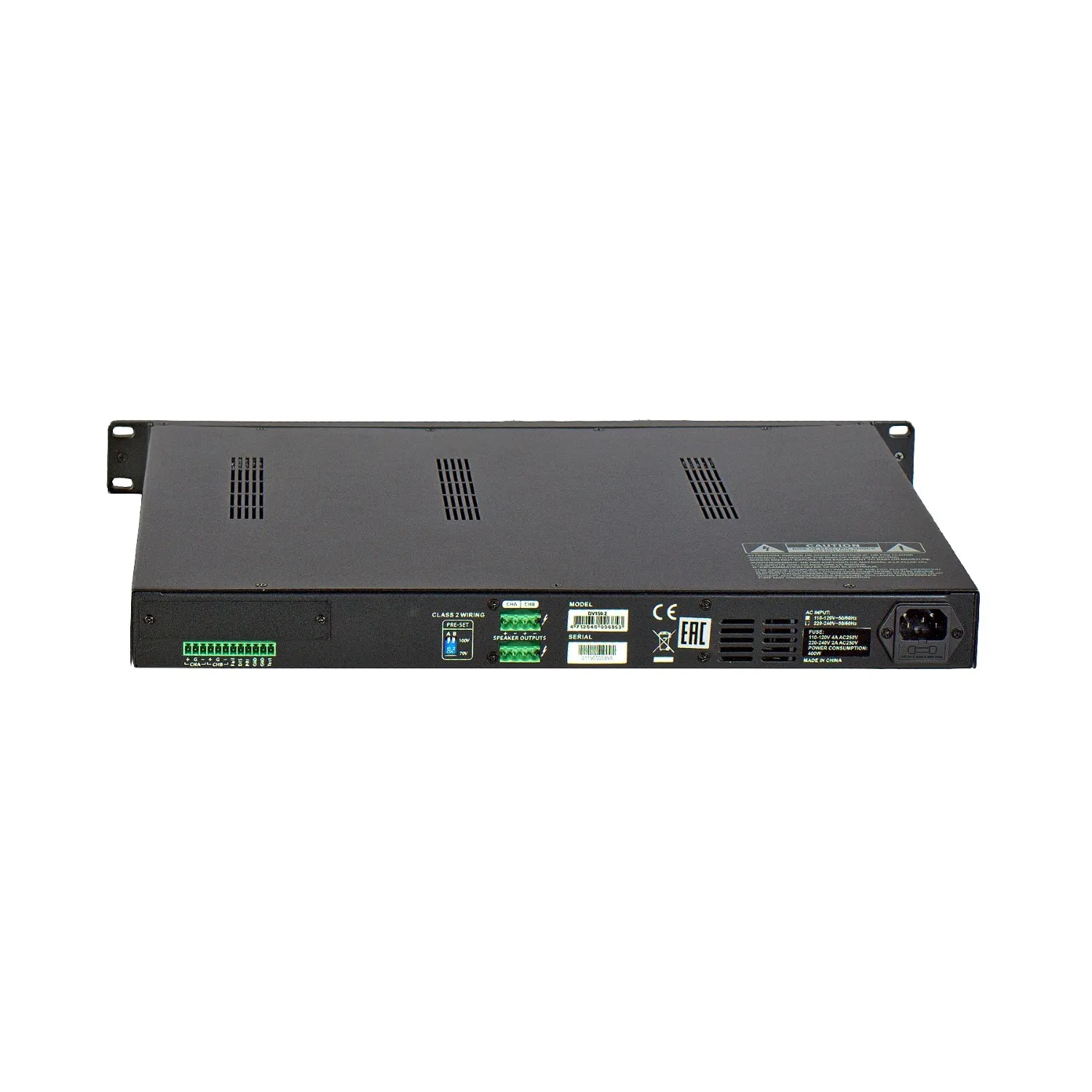 - Особенности: трансляционный (100 и 70 В), входы/выходы на разъёмах Euroblock