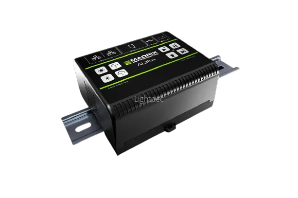 Поскольку у AURA нет DMX-выходов на борту, для осуществления управления приборами необходимо использовать блоки конвертации сигнала, и наилучшими вариантами будут MADRIX STELLA, LUNA и NEBULA.