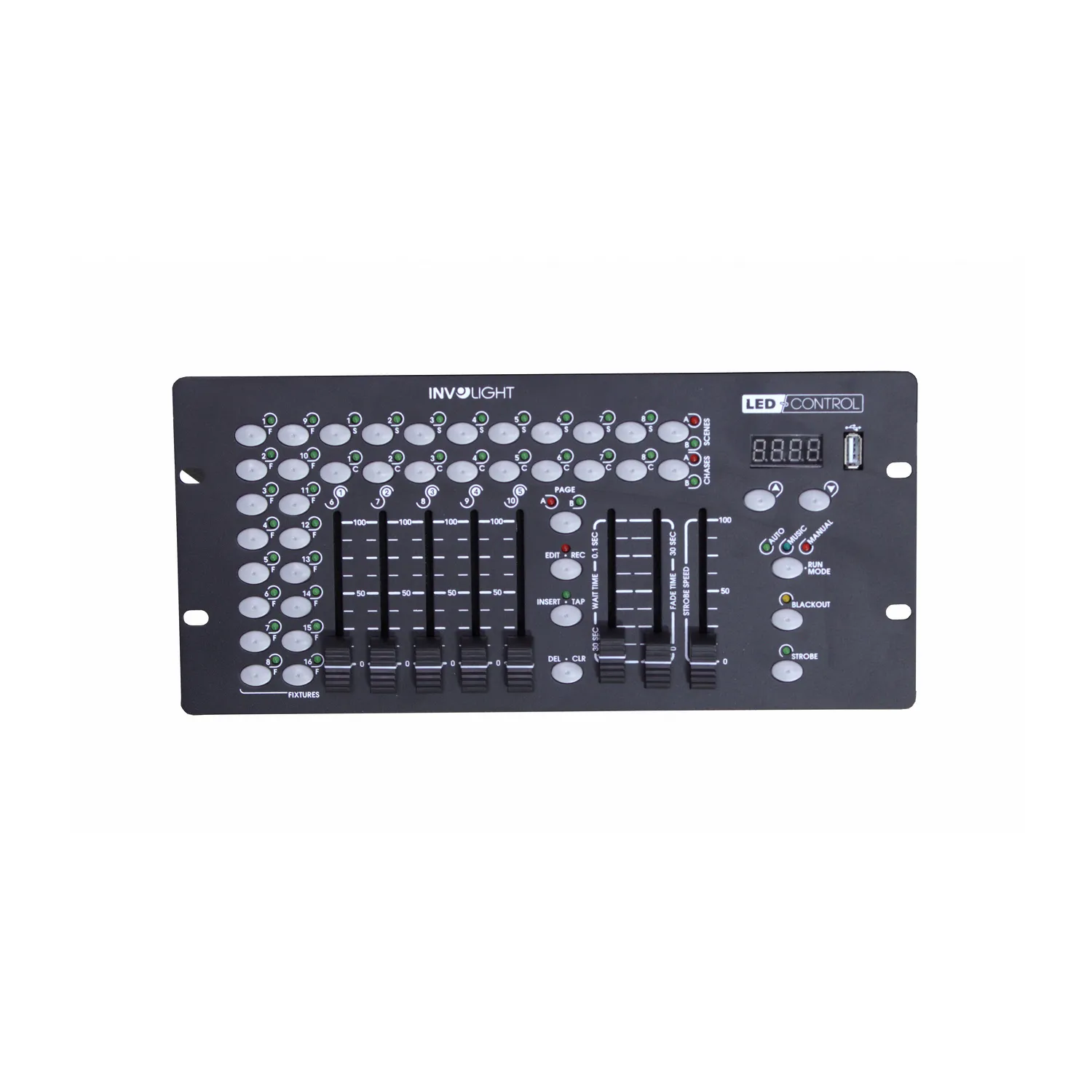 LEDCONTROL - Светодиодный контроллер DMX512. Контроллер может управлять до 16 световых приборов, каждый из которых должен управляться не более 10 каналами. Особеностью контроллера является то, что он произведен специально для управления светодиодными приборами RGB, RGBW. Также в LEDCONTROL установлен USB-порт. Через USB-разъем данные могут быть сохранены или считаны. При этом содержимые сцены, чейзы сохранятся в виде файлов во внутренней памяти. Вы можете создать до 16 резервных копий.Особенности: