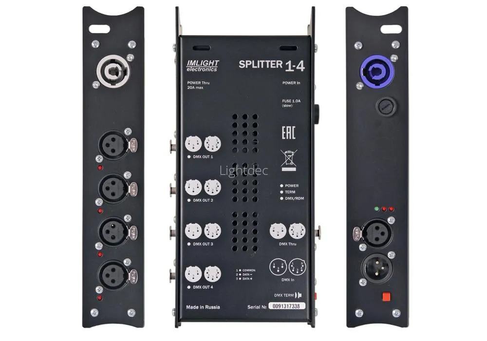 - Количество выходных DMX каналов: 4 с гальванической развязкой.