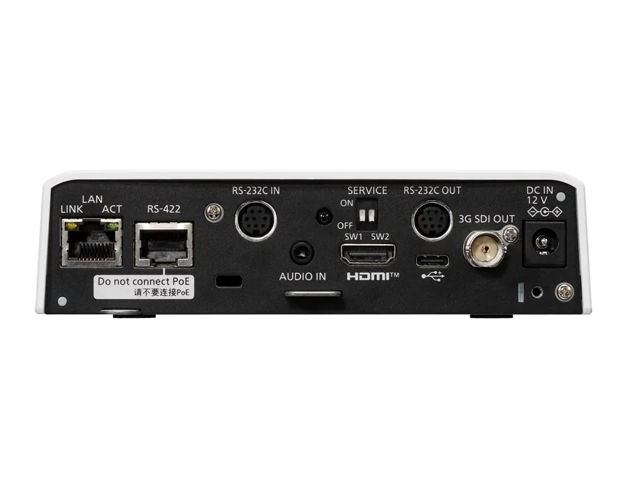 Камера оснащена 1/2.8-дюймовым MOS-сенсором для записи качественного Full-HD видео и поддерживает 3G-SDI, HDMI и IP интерфейсы. Широкоугольный объектив с углом зрения 71° и 12-кратным оптическим зумом делает её идеальной для небольших помещений.