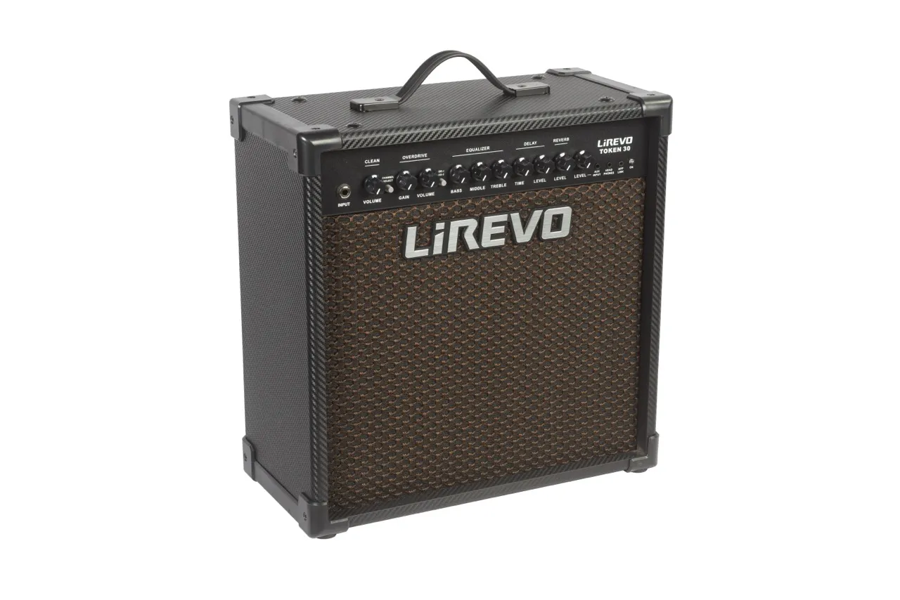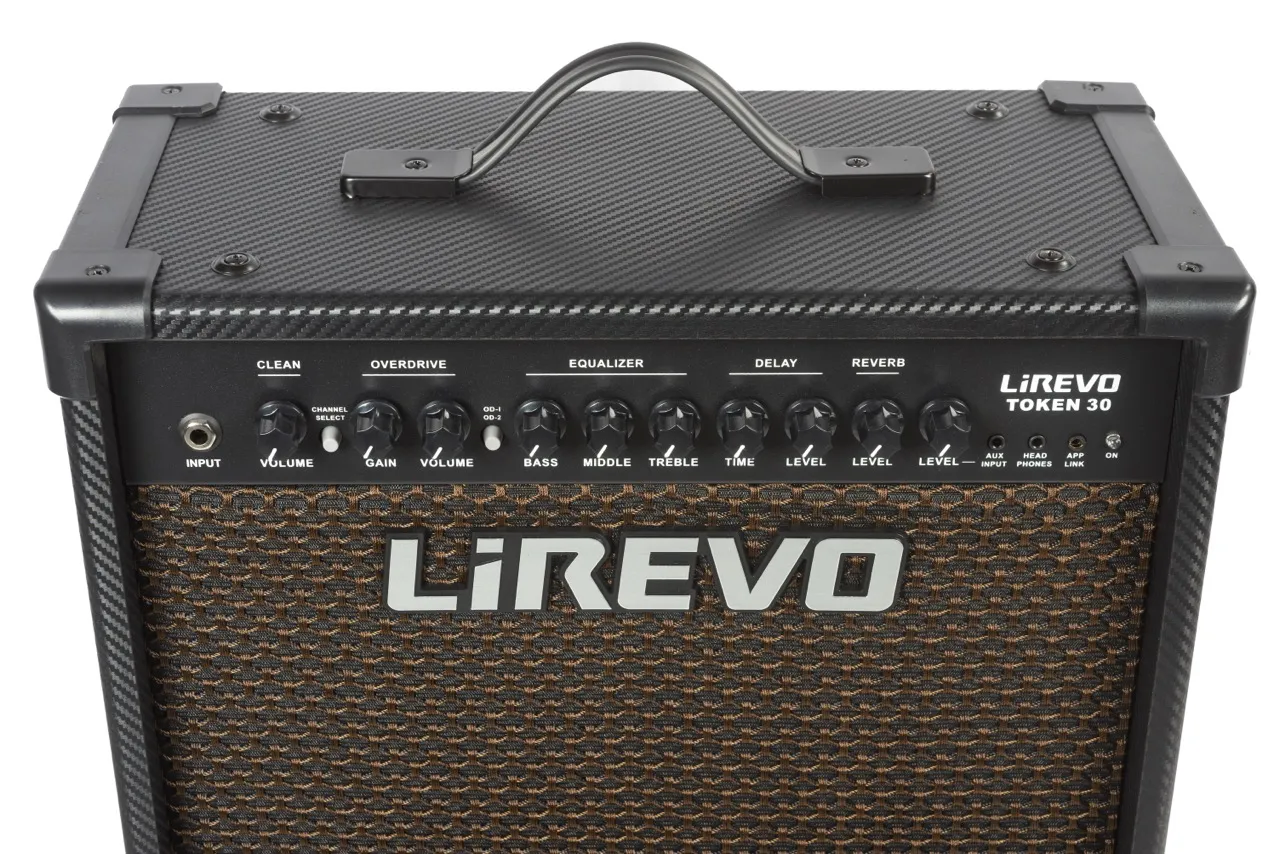 LiRevo TOKEN 30 - двухканальный транзисторный комбоусилитель мощностью 30 Вт с электронным ревербератором, делэем, петлей эффектов и функцией подключения по Bluetooth - оптимальное решение для гитаристов, желающих создавать качественную музыку. Мощности этого комбо хватит не только для репетиций, но и для игры в небольшом клубе.