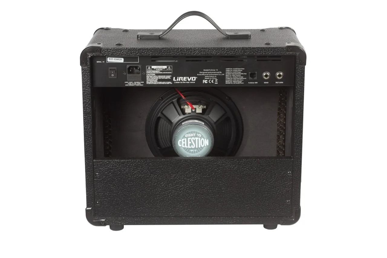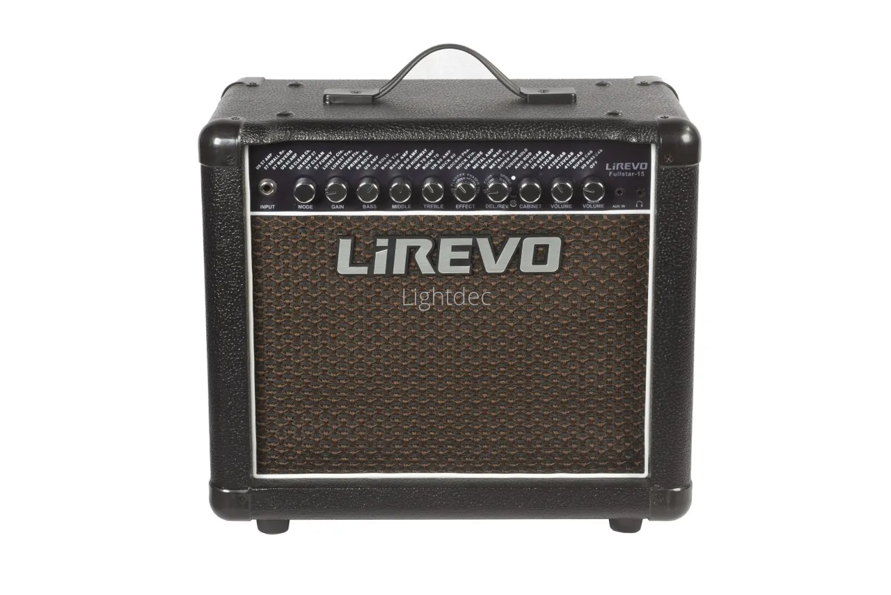 Моделирующий гитарный комбоусилитель LiRevo Fullstar-15 мощностью 15 Вт с 32 моделями усилителей, 8 моделями кабинетов, 8 звуковыми эффектами и возможностью подключения футсвитча.