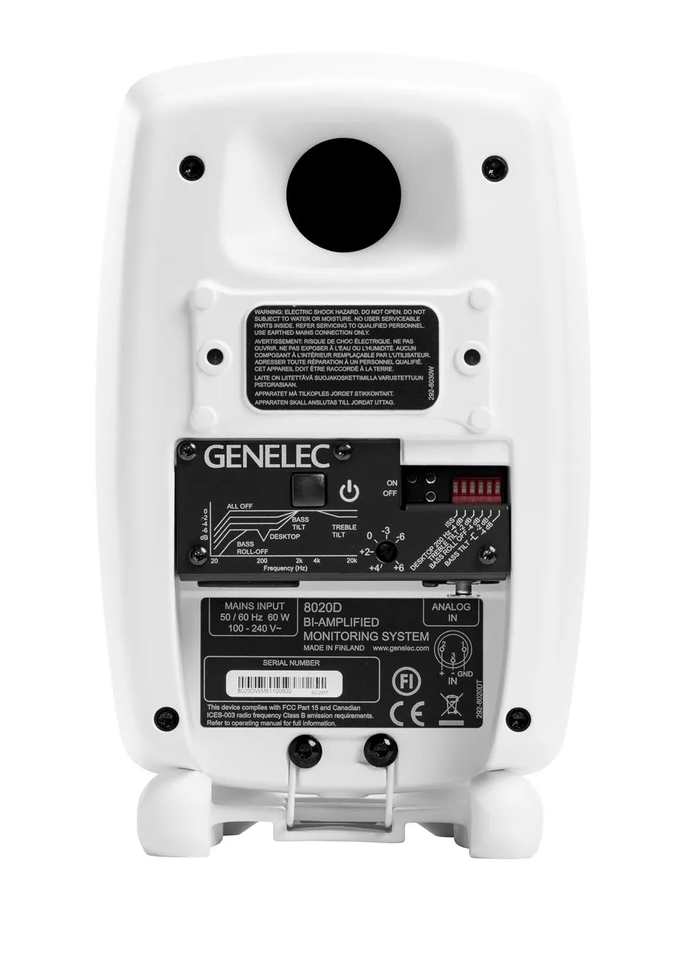 Genelec 8020DWM — компактный активный студийный монитор для небольших студий, мобильных установок и персонального мониторинга. Обладает высоким SPL и низким энергопотреблением. Особенности: двойное усиление, активный кроссовер, суммарная мощность 100 Вт, вход XLR, встроенные аттенюаторы и фильтры. Алюминиевый корпус, НЧ-динамик 4” и ВЧ-драйвер 0,75” с неодимовыми магнитами для ровной АЧХ и широкого угла звука.