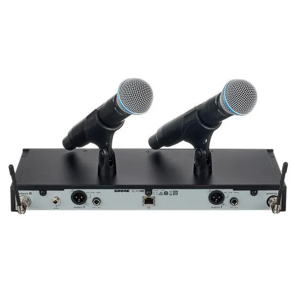 Радиосистема Shure SLXD24DE/B58 H56 работает в диапазоне УВЧ (518–562 МГц). Включает два приёмника SLXD4DE и два передатчика SLXD2. Частотный диапазон — 50–16 000 Гц, динамический — 120 дБ. Мощность передачи — 1 мВт/10 мВт. 12 каналов в диапазоне 8 МГц.