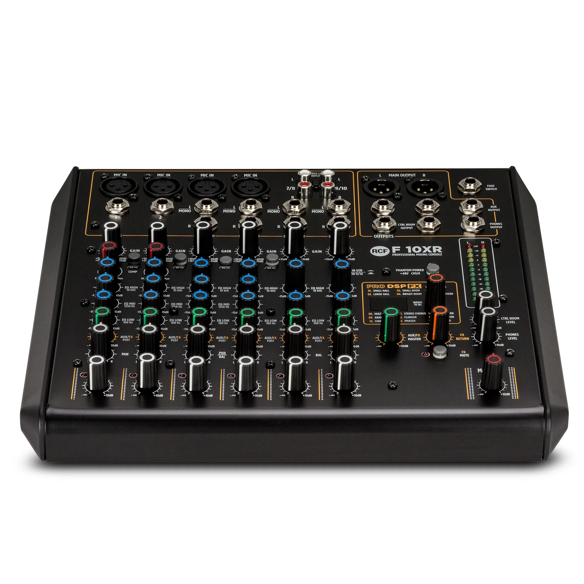 Микшерный пульт RCF F 10XR — профессиональный инструмент от итальянской компании RCF. Модель оснащена 10 сбалансированными каналами и USB-аудиоинтерфейсом для записи сигнала на компьютер. В пульте есть профессиональные пресеты для эффектов (реверберация, задержки, хорус, фленджеры, эхо) и два управляющих компрессора.