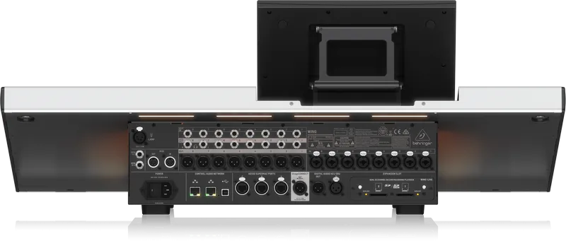 Behringer Wing может работать со 144 каналами ввода/вывода (AES50) и имеет в общей сложности 28 шин. Устройство оснащено 2 ethernet портами для сетевого управления и комплектуется модулем для взаимодействия с Waves SoundGrid и Dante / AES67, что позволяет добавить еще до 64 каналов входа / выхода. Любой из каналов при этом поддерживает переключение как в моно так и в стерео режим с мгновенным применением настроек. У модели имеется сенсорный дисплей, большое количество кнопок/регуляторов и 24 моторизированных фейдера.