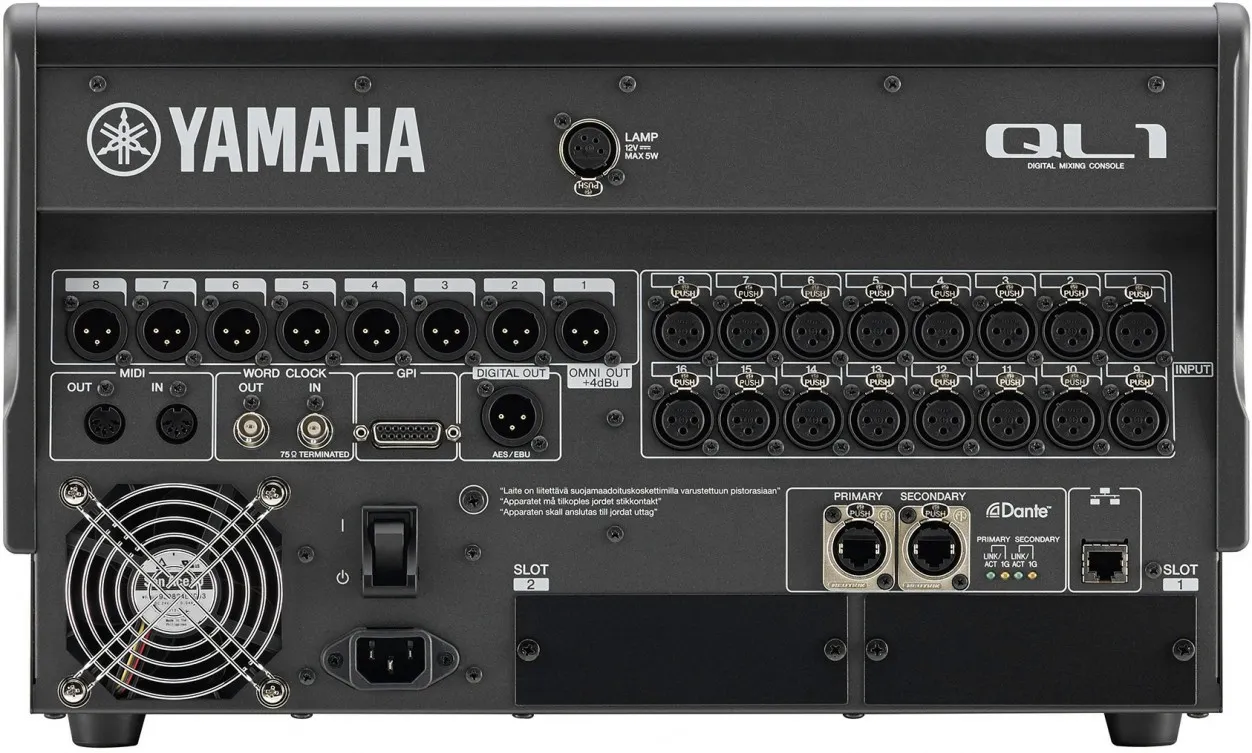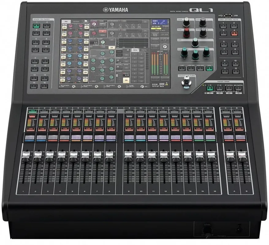 Yamaha QL1 — новый микшерный пульт от Yamaha. Это компактная консоль с полным спектром средств для микширования, обработки и маршрутизации живого звука для малых и средних мероприятий. Она имеет 32 моно и 8 стерео каналов для микширования, 16 микшинговых и 8 матричных выходов. У пульта 16 микрофонных/линейных входов и 8 аналоговых Omni выходов.