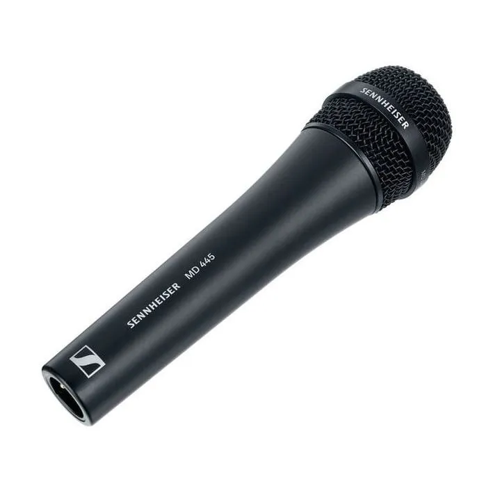 Микрофон Sennheiser MD 445Sennheiser MD 445 — это динамический микрофон высокого качества с суперкардиоидной диаграммой направленности. Он оснащён большой диафрагмой и системой амортизации для защиты от шумов. Благодаря алюминиево-медной звуковой катушке микрофон обеспечивает чистое звучание вокала и быструю переходную характеристику. Устройство защищено от обратной связи и электромагнитных помех, а его металлический корпус гарантирует надёжность.