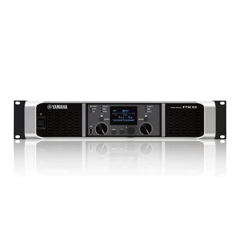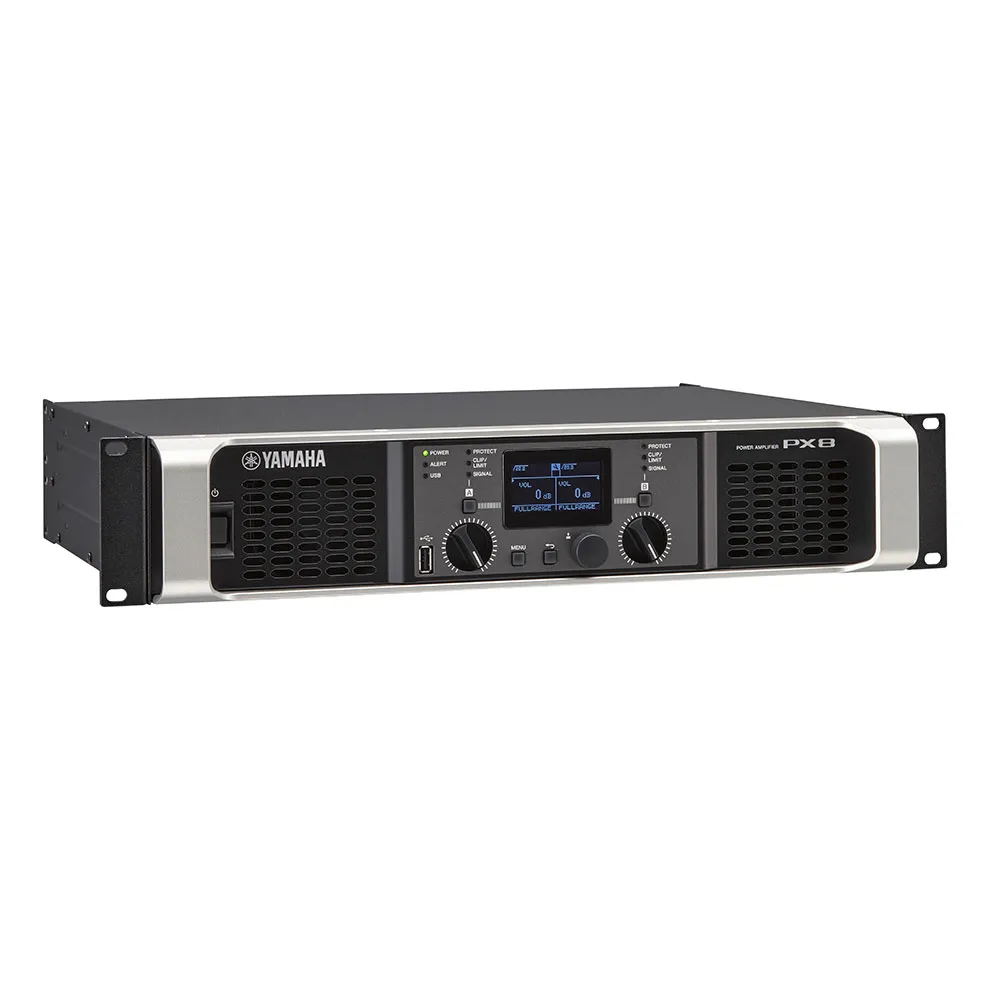Усилитель мощности Yamaha PX8 — мощная интеллектуальная система с обработкой сигнала. Характеристики: 2 х 800 Вт на 8 Ом и 2 х 1050 Вт на 4 Ом. Особенности: класс D, PEQ, фильтры, функции задержки и лимитера. Предустановленные настройки для акустических систем Yamaha.